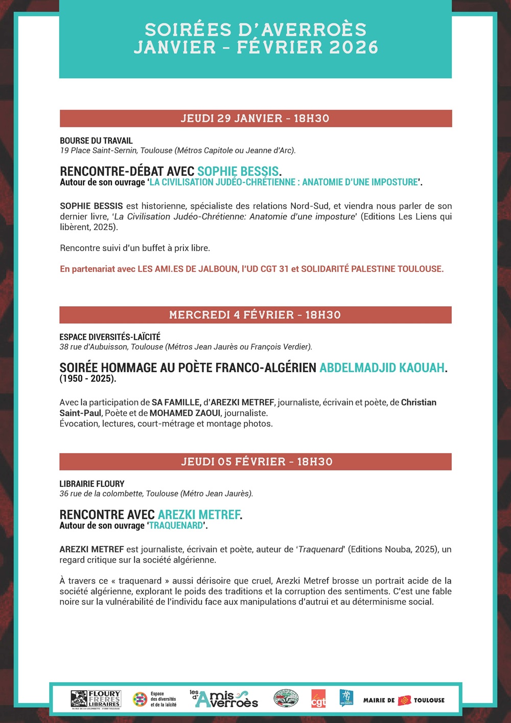 SAMEDI 21 février 2026 de 14h30 à 17h30 GAZETTE CAFE Petit Théâtre 6 rue Levat Montpellier -Entrée libre-