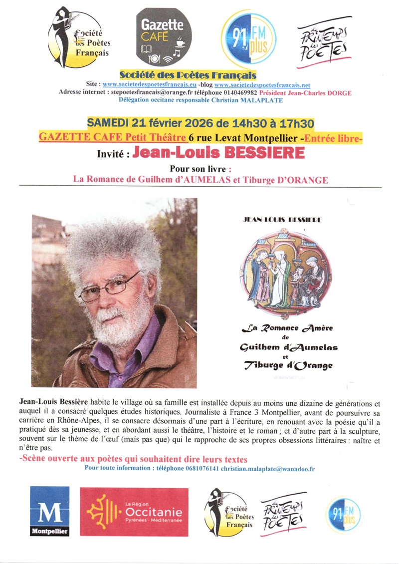 Invité : Jean-Louis BESSIERE Pour son livre : La Romance de Guilhem d’AUMELAS et Tiburge D’ORANGE